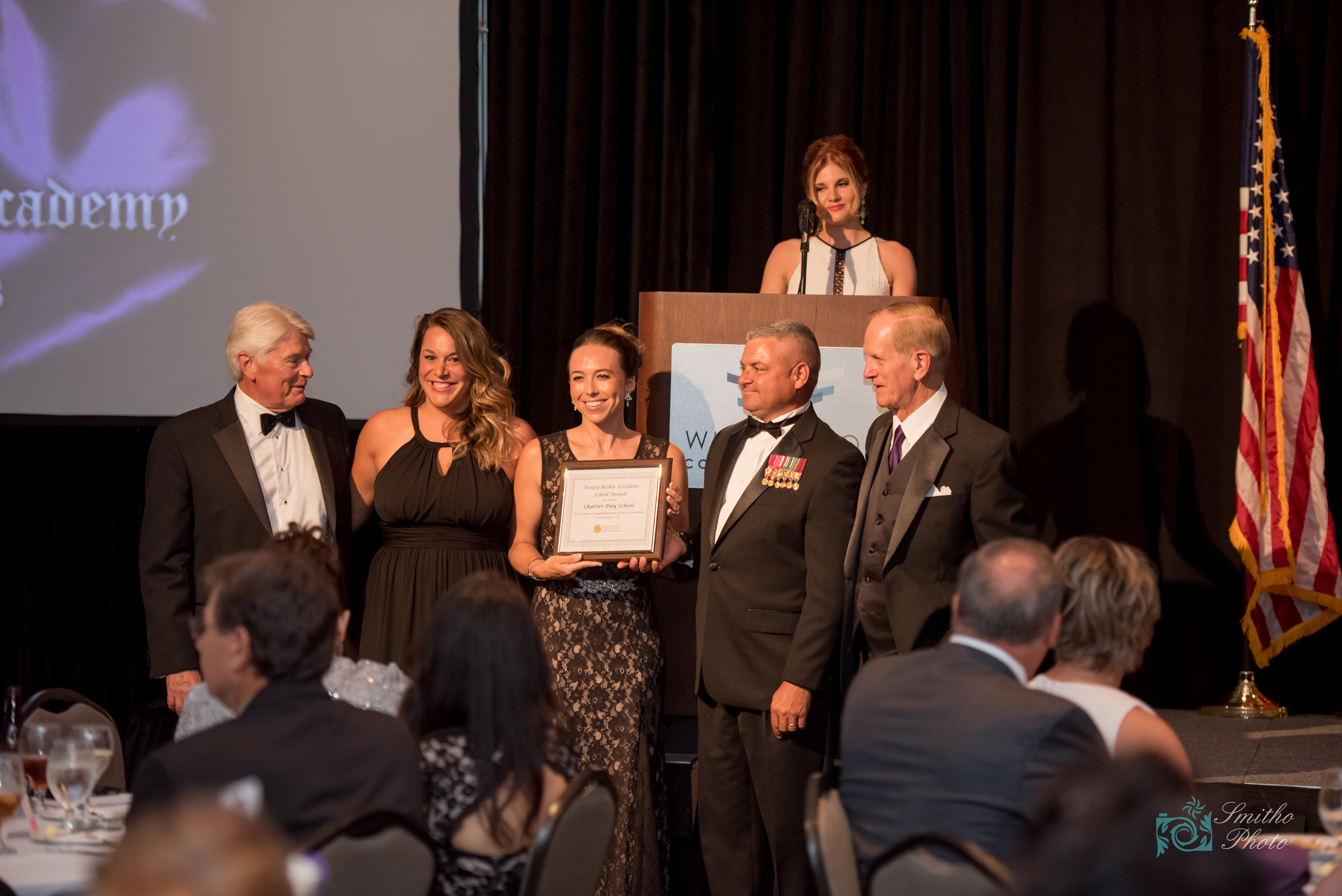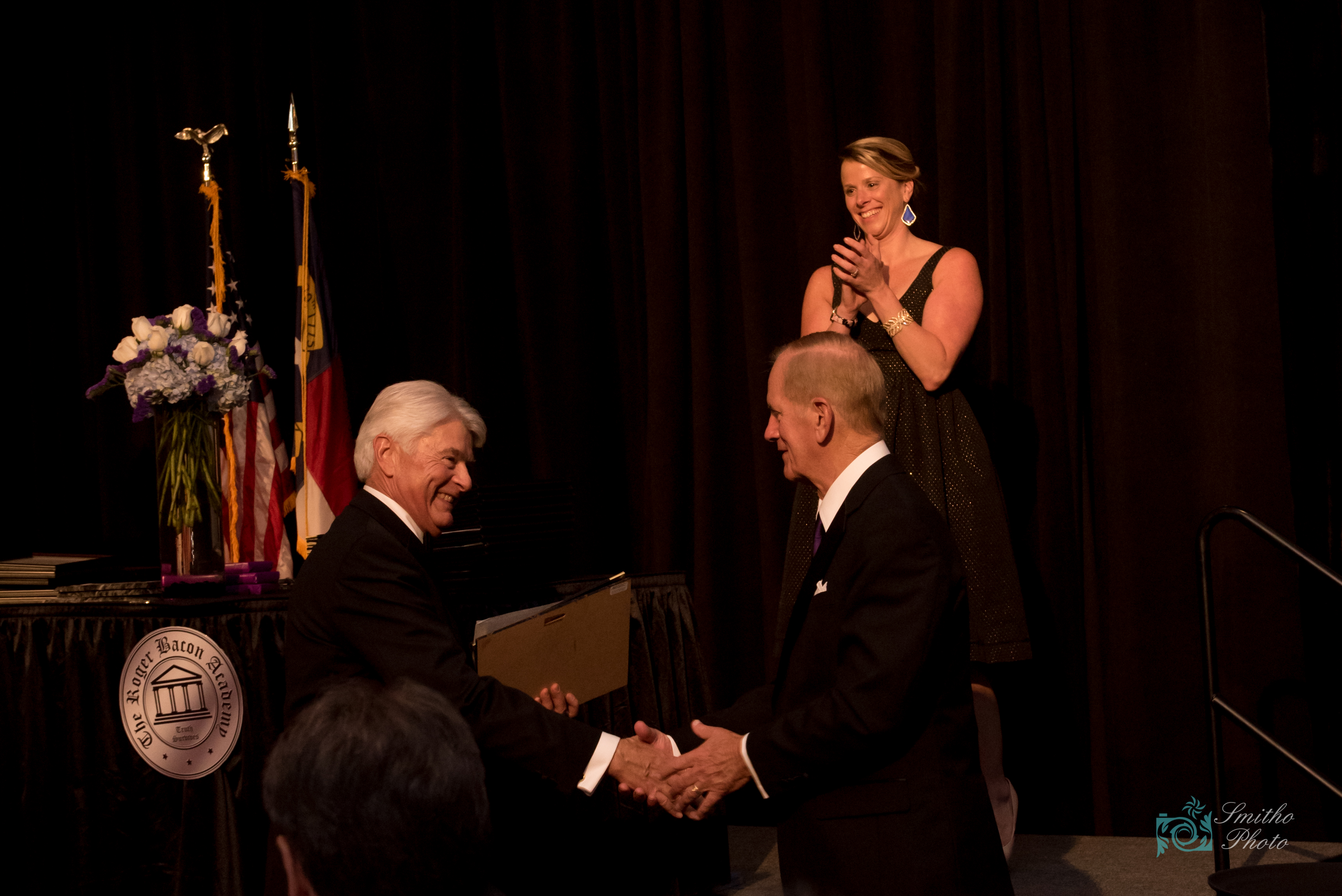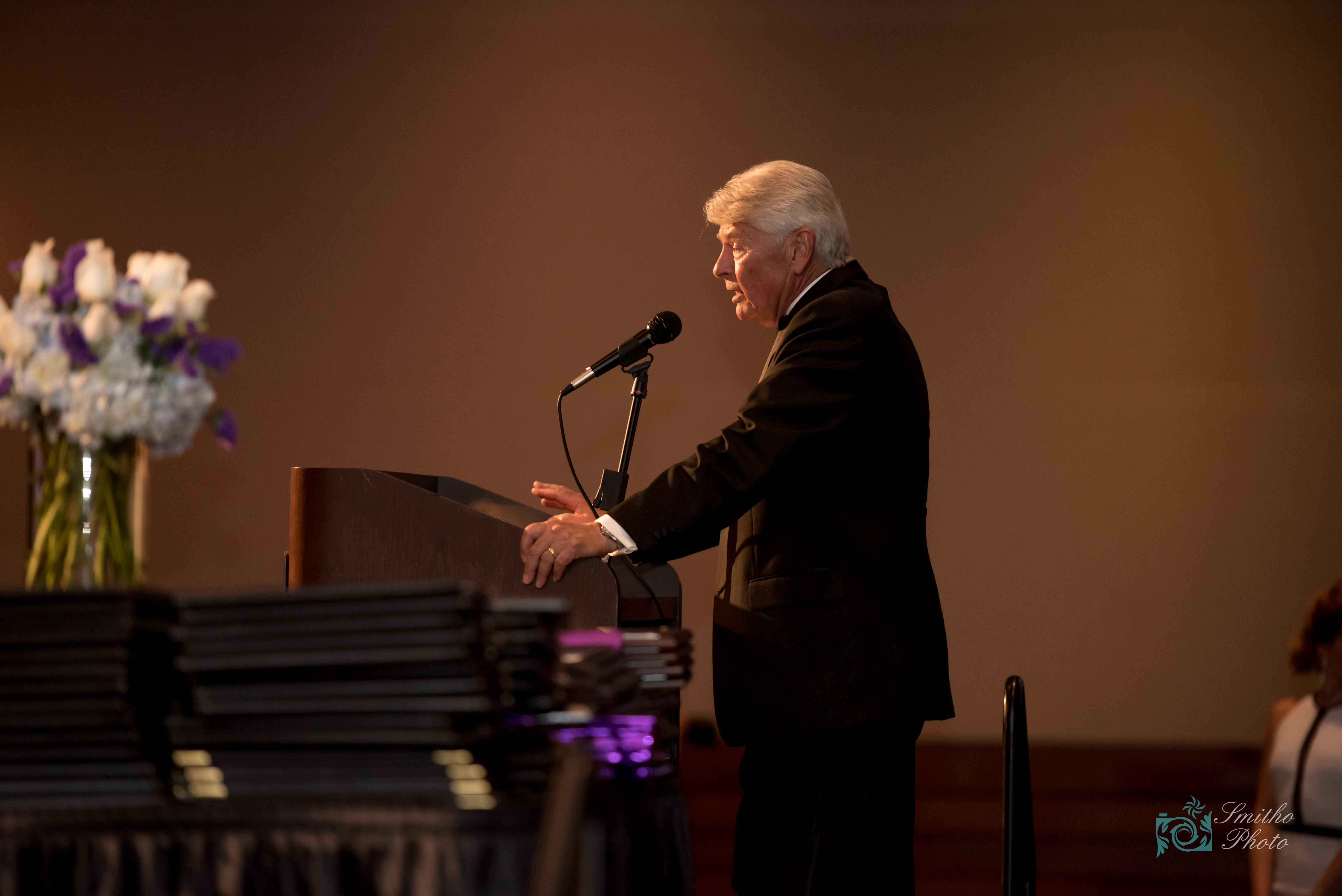 After a convivial mixer, a sumptuous dinner of shrimp and grits or stuffed chicken was served and topped off with an enormous slice of chocolate cake. After dinner, the program began with an address by Bob Spencer, Chairman of the Charter Day School, Inc. (CDS, Inc.) Board of Trustees. Nonprofit CDS, Inc. employs RBA to manage its four public charter schools by providing administrative and support departments, such as finance, human resources, curriculum selection, teacher training and support, data management, and communications, among others. Chairman Spencer thanked teachers, assistants, and support staff for their dedication and praised their success in consistently producing some of our region’s top schools.
