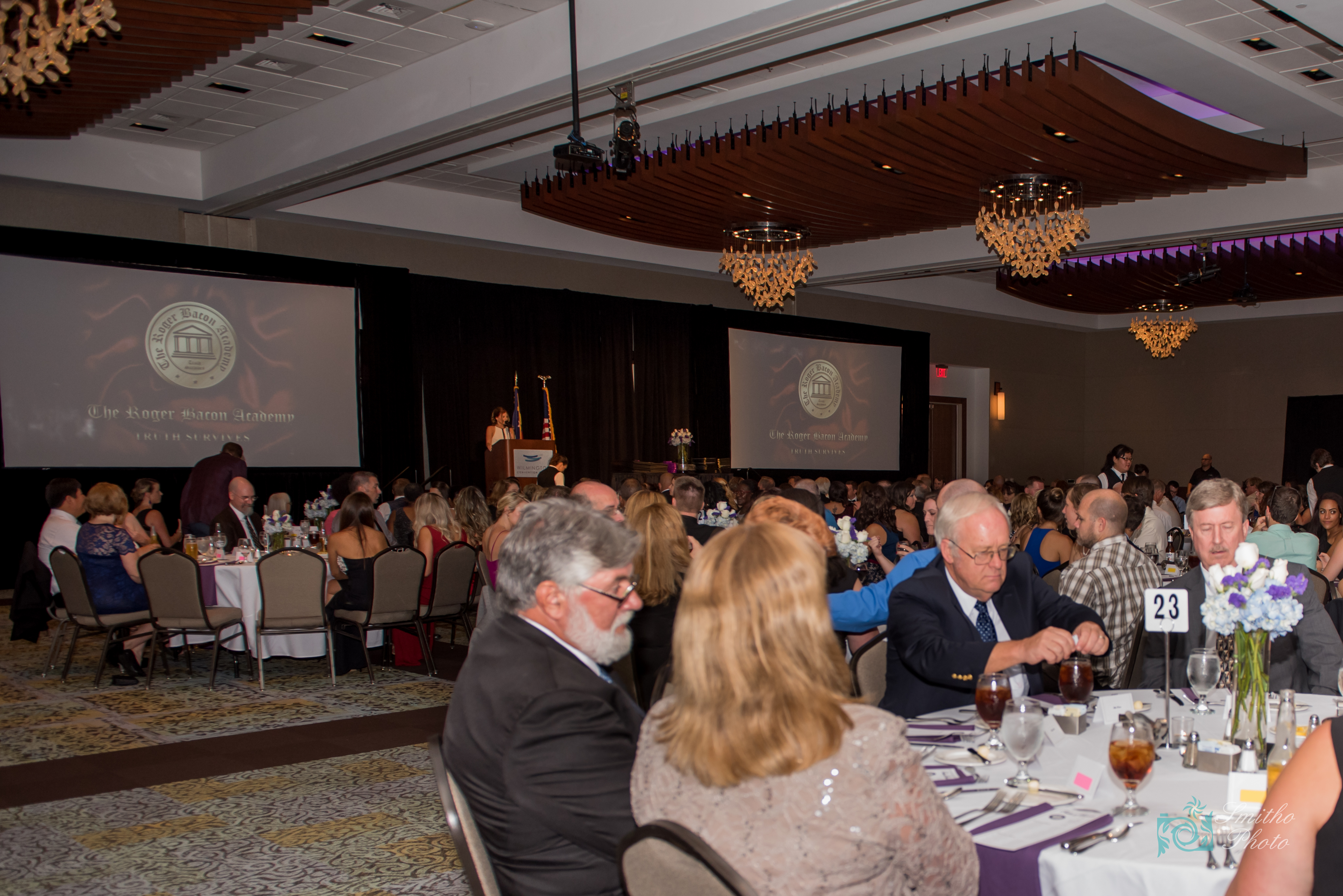 The Roger Bacon Academy, Inc. (RBA) recently hosted its Employee Appreciation Banquet at the Wilmington Convention Center. Attended by nearly 400 employees and their guests, the main ballroom was festively decorated in the the company’s colors of purple and white for lighting, flower arrangements, and table decorations with many guests formally attired in long gowns or colorful cocktail dresses.